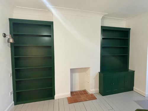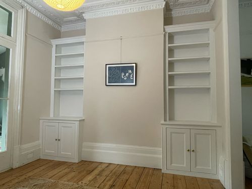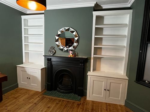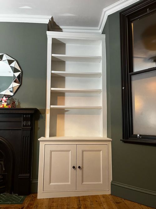 Looking for more alcove unit ideas to suit your Victorian or Edwardian home? Browse examples featuring shaker and panelled doors, traditional mouldings, adjustable shelving, and hidden cable management for TVs and media. These full height alcove unit ideas blend period-appropriate joinery with everyday practicality, whether you need a display library, a discreet AV cupboard, or a mix of open shelves above and closed cabinets below.