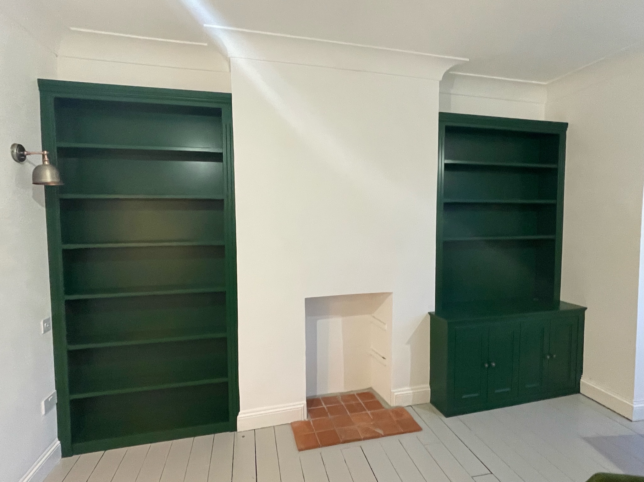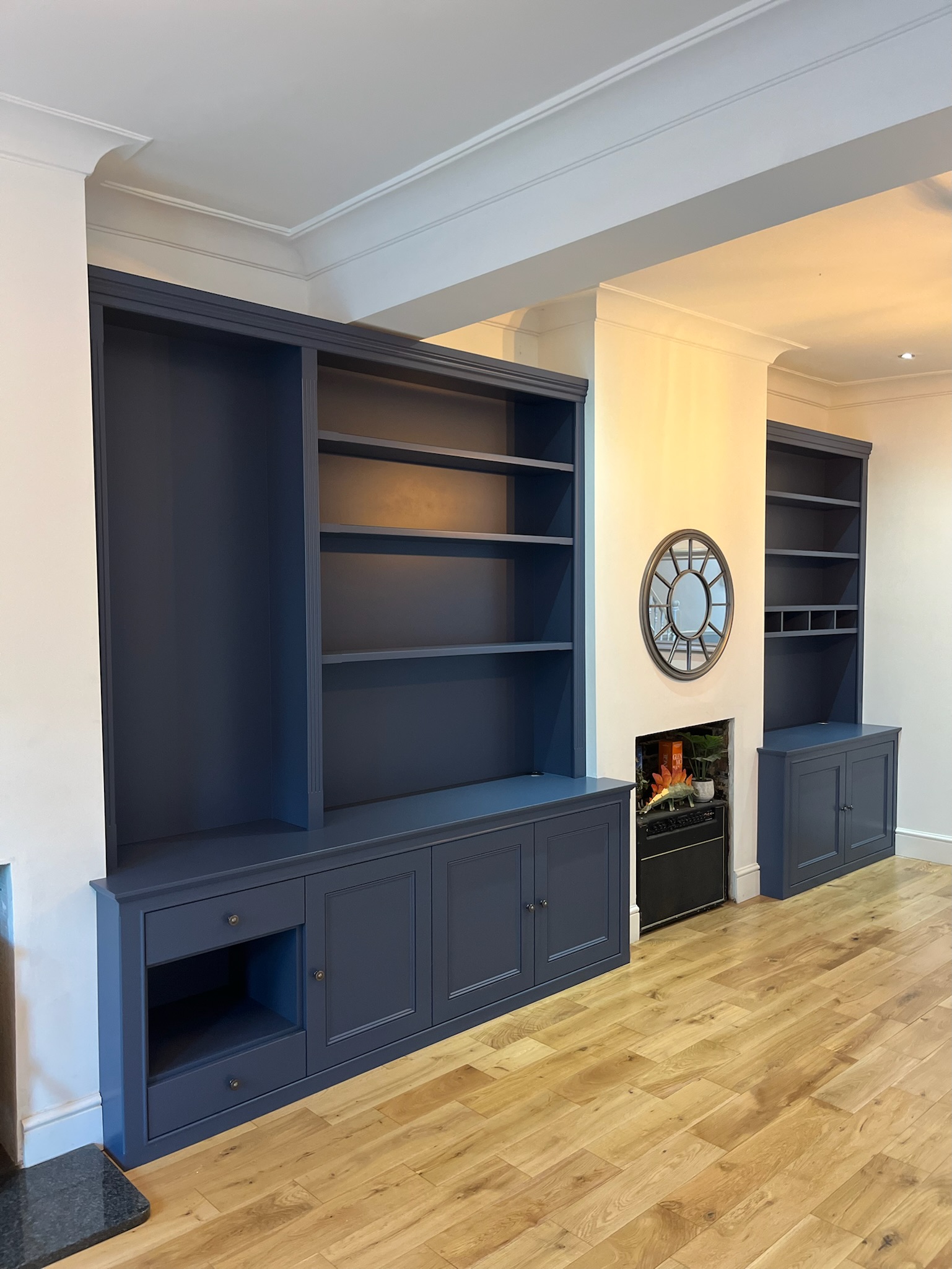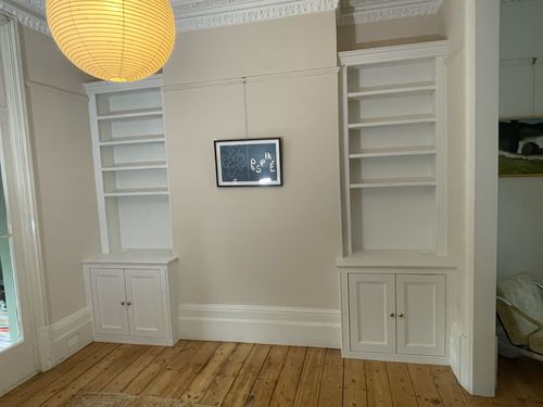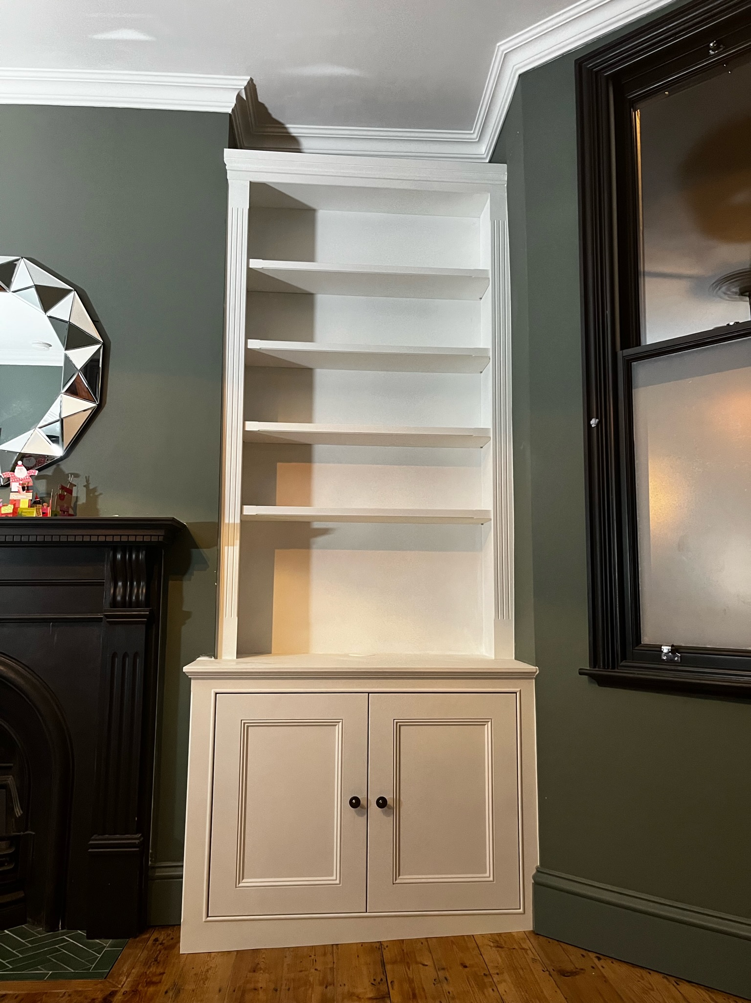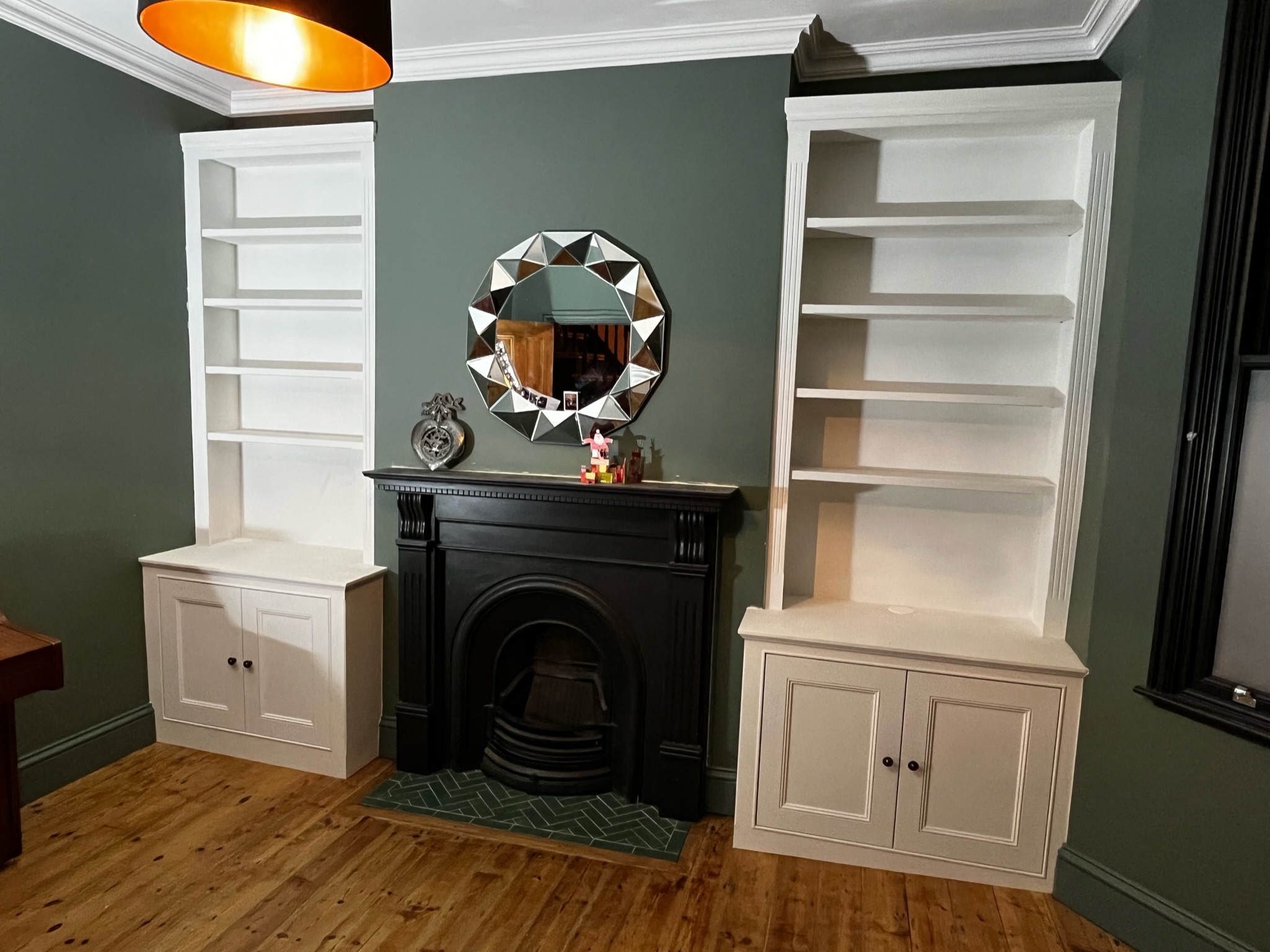 From painted shaker doors to plain modern panels, each unit is hand-built and finished on site to line up perfectly with the architectural features of your room. Explore the gallery to see how full height alcove units can transform a living room, study or bedroom into a beautifully organised and characterful space.