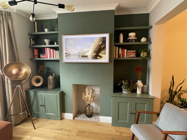 Walthamstow E17 Alcove Cabinets with Exposed End and Concealed TV Wiring